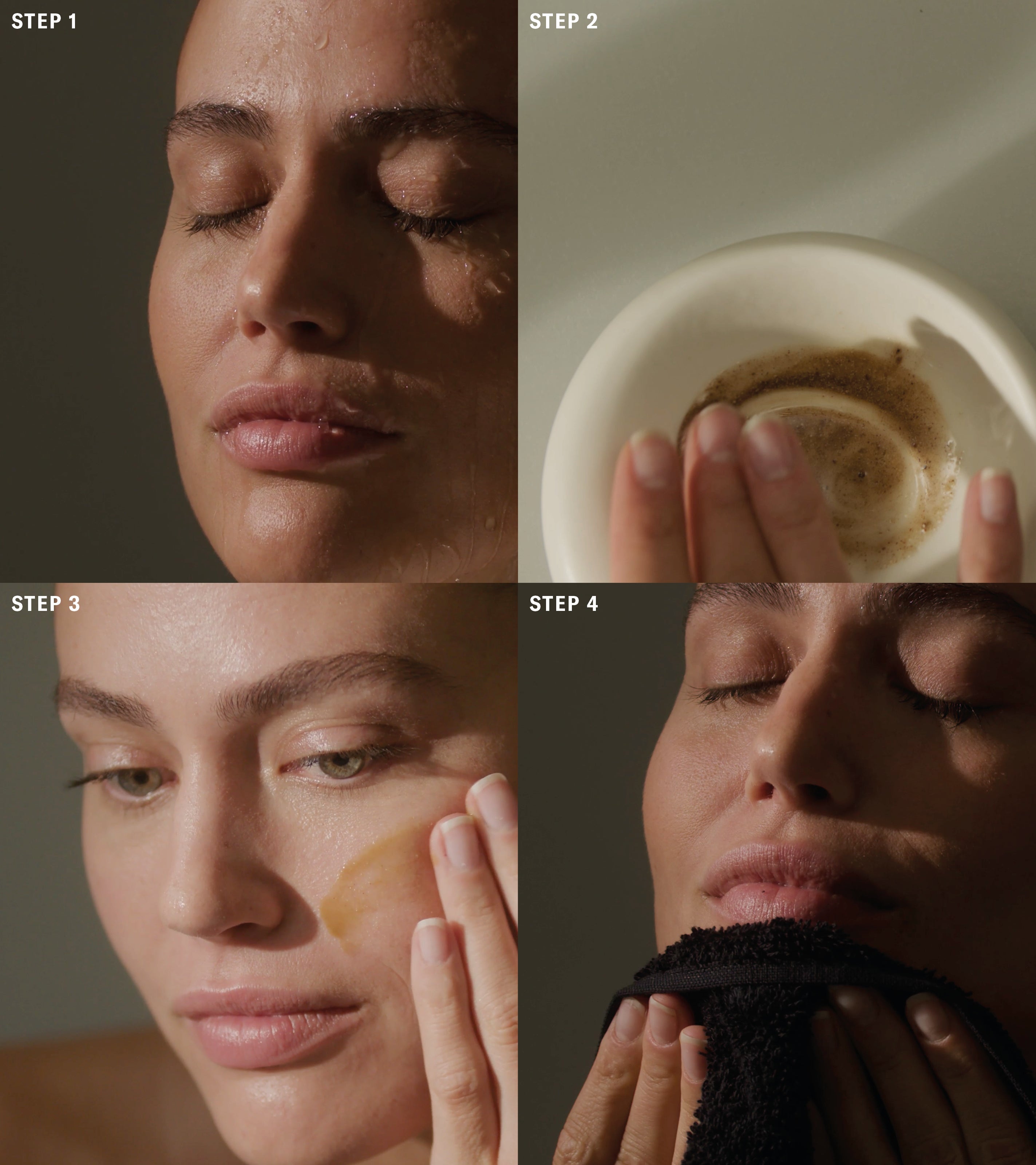 3. Blend and massage the naturally textured cleanser into your skin using circular motions.